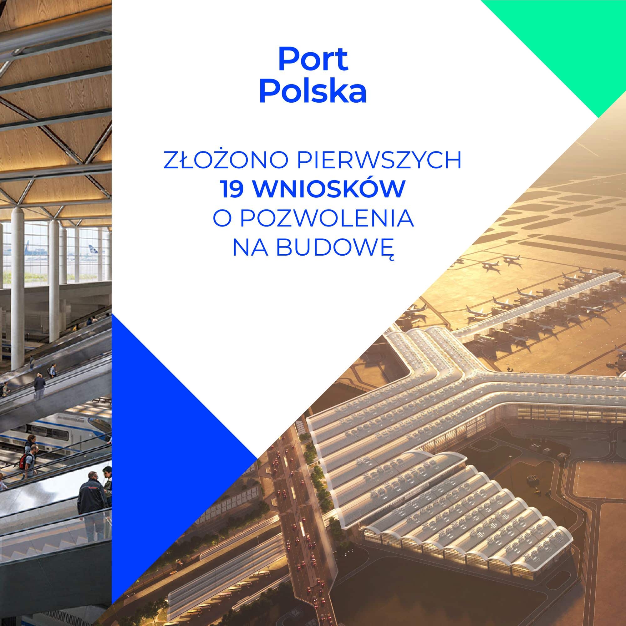Decyzja została ogłoszona 19 grudnia, w grudniu 2025 roku, kiedy Centralny Port Komunikacyjny poinformował o złożeniu 19 wniosków o pozwolenia na budowę w Mazowieckim Urzędzie Wojewódzkim. Dokumenty dotyczą kluczowych elementów infrastruktury nowego lotniska Port Polska, w tym terminala pasażerskiego oraz węzła kolejowo-autobusowego.