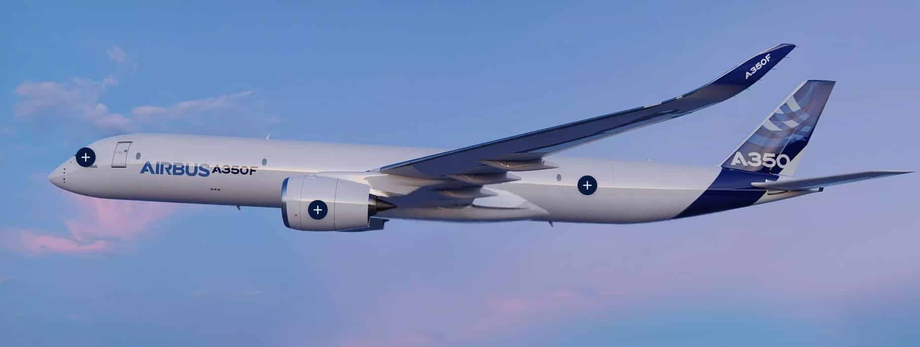 A350F to pierwszy całkowicie nowy, szerokokadłubowy samolot towarowy zaprojektowany przez Airbusa. Maszyna charakteryzuje się największymi w branży drzwiami ładunkowymi na pokład główny oraz zoptymalizowaną konstrukcją kadłuba, umożliwiającą maksymalne wykorzystanie standardowych palet i kontenerów lotniczych. Ponad 70 procent struktury samolotu wykonano z materiałów kompozytowych i lekkich stopów, co pozwoliło zredukować masę startową o 46 ton w porównaniu z konkurencyjnymi modelami.