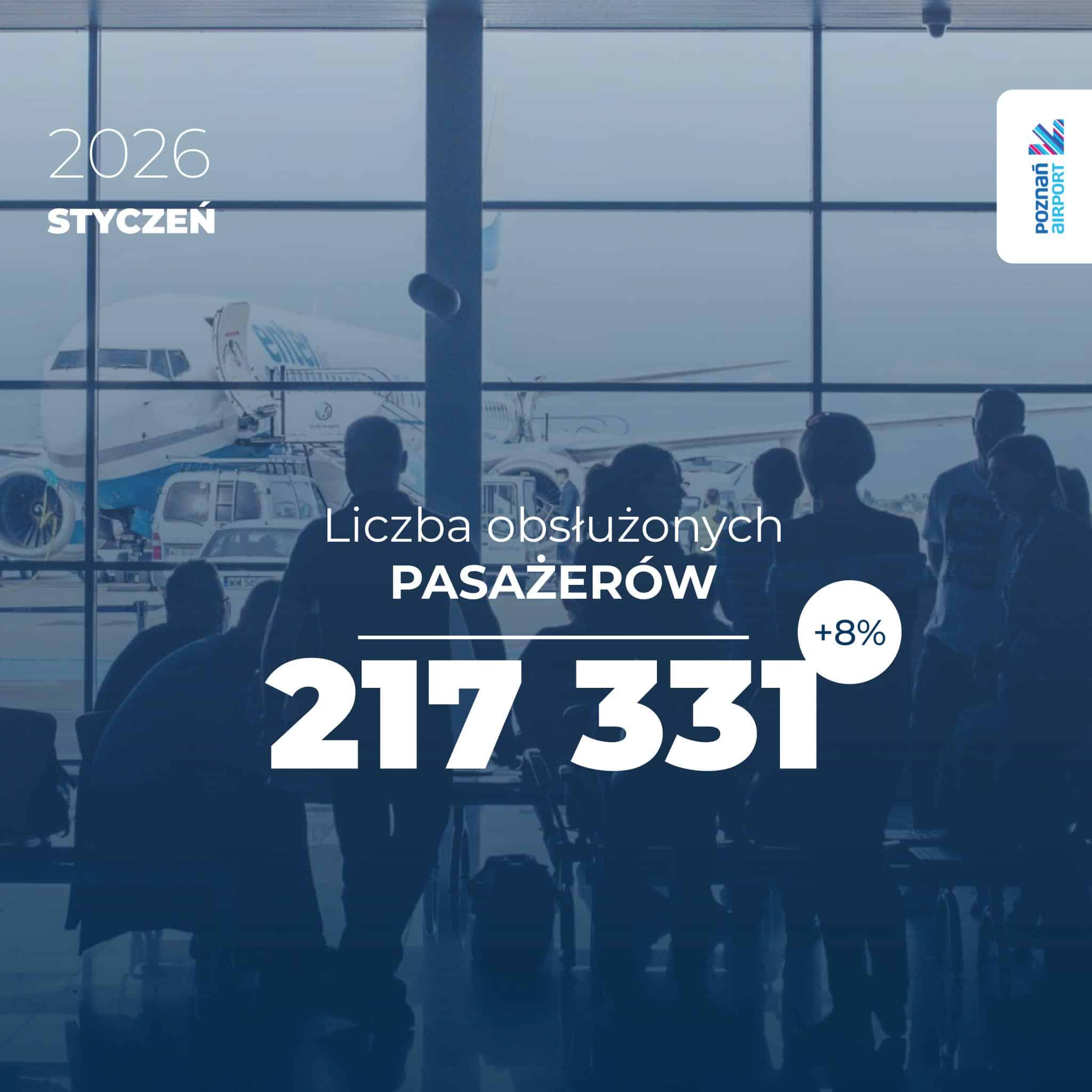 W styczniu poznańskie lotnisko obsłużyło 217 331 pasażerów, czyli o 8 proc. więcej niż w styczniu 2025 roku.