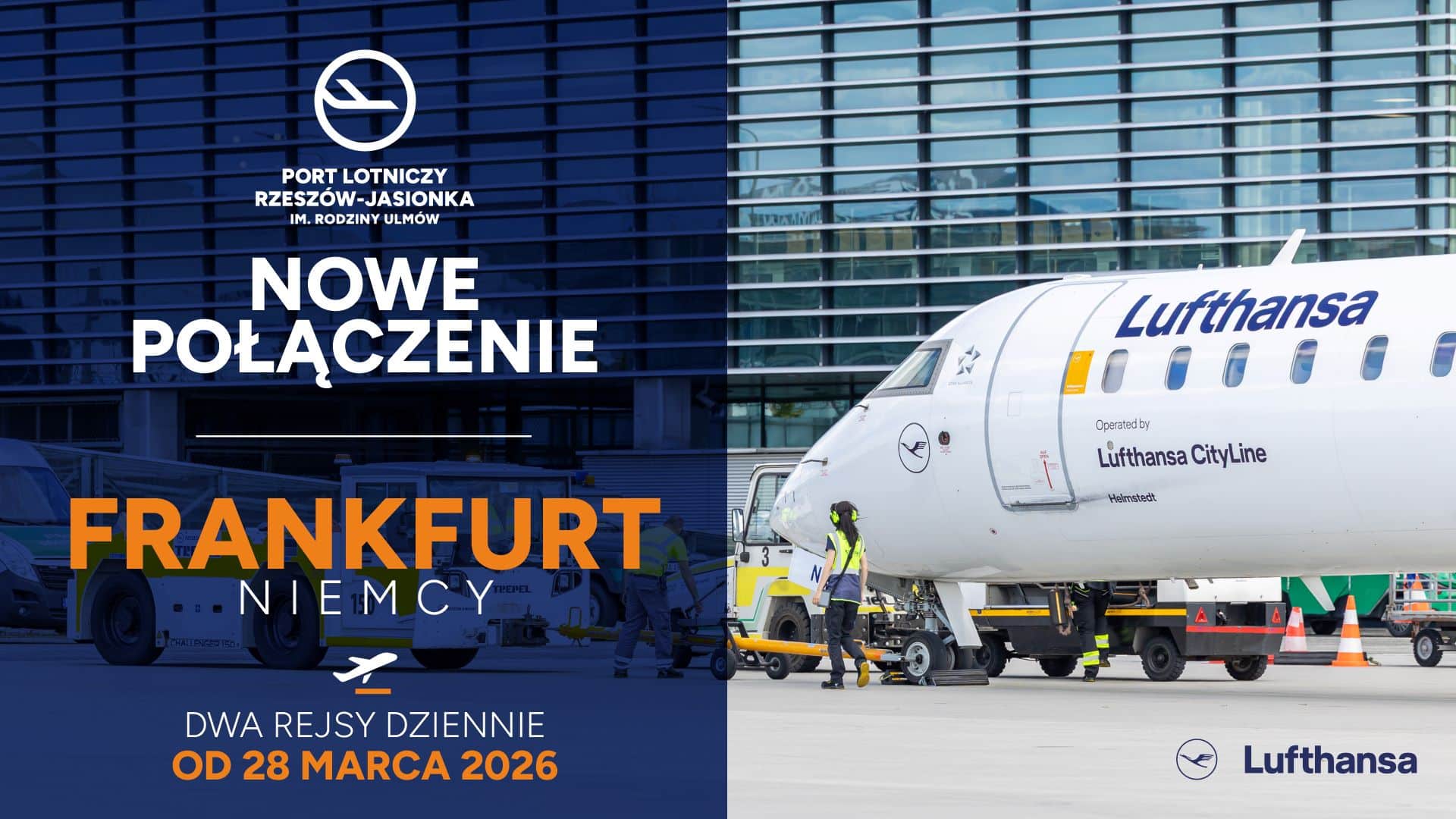 Od 28 marca 2026 roku pasażerowie z Podkarpacia polecą z Portu Lotniczego Rzeszów-Jasionka bezpośrednio do Frankfurtu nad Menem. Nowe połączenie Lufthansy zastąpi dotychczasową trasę do Monachium, oferując jednocześnie dwa rejsy dziennie przez siedem dni w tygodniu.