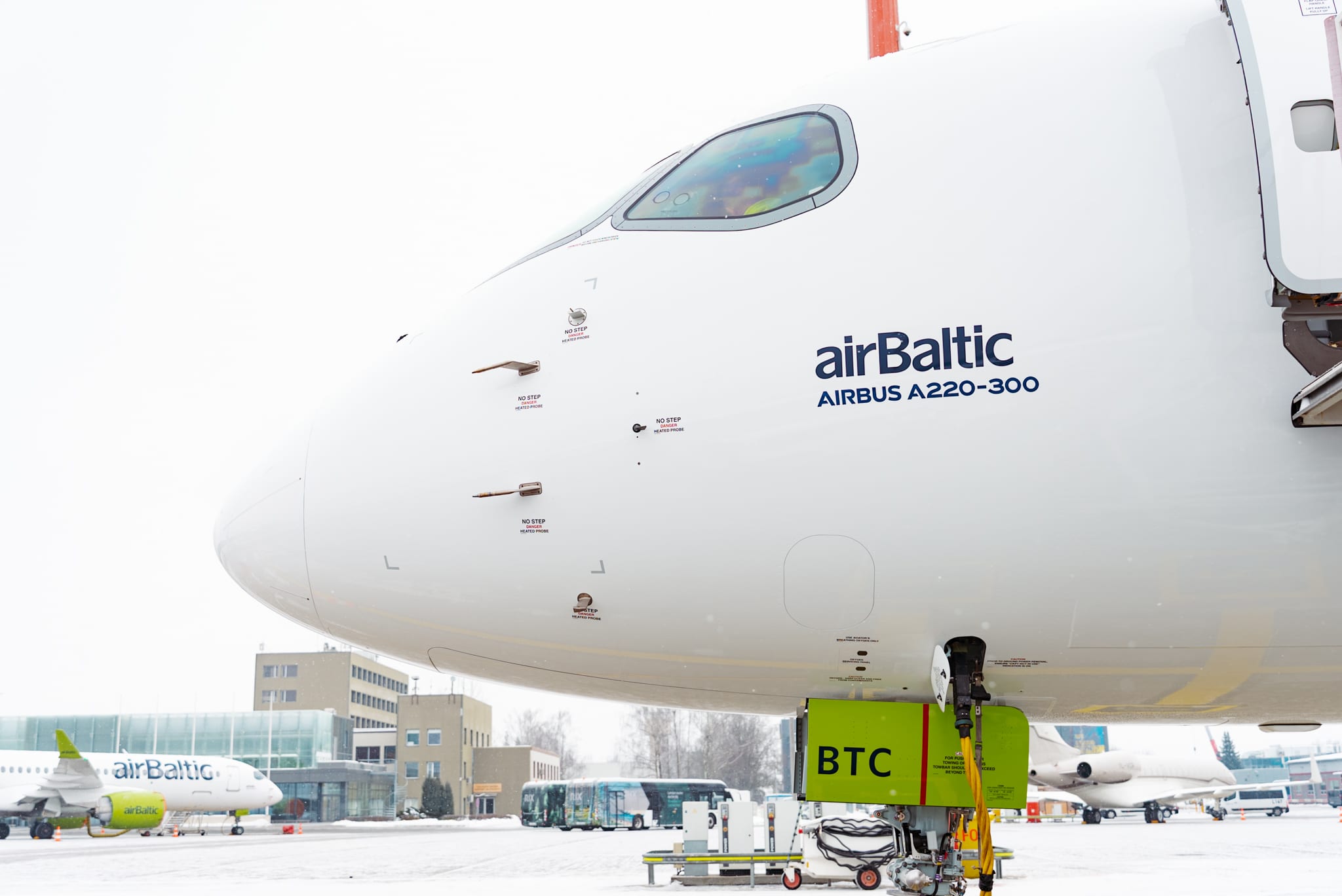 Rejsy obsługiwane są samolotami Airbus A220-300, które stanowią podstawę floty AirBaltic. Dodatkowo przewoźnik wdraża szybki internet pokładowy SpaceX Starlink.