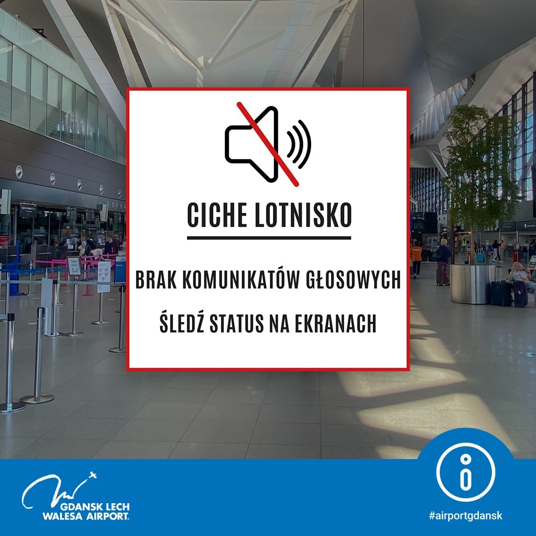 Od stycznia 2025 r. Port Lotniczy im. Lecha Wałęsy w Gdańsku dołączy do grona tzw. cichych lotnisk; bez emitowanych z głośników komunikatów o rozpoczęciu boardingu czy ostatnim wezwaniu na wylot samolotu – poinformowały władze lotniska.