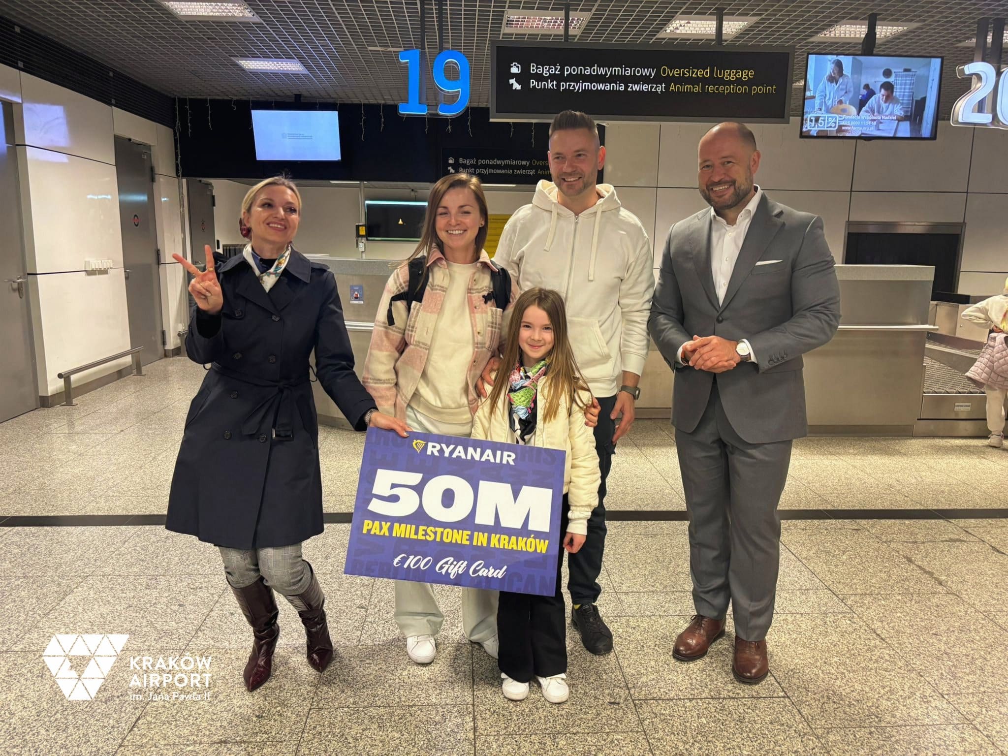 22 kwietnia Ryanair oraz Kraków Airport oficjalnie ogłosiły przekroczenie poziomu 50 mln obsłużonych pasażerów w komunikacji lotniczej od początku obecności przewoźnika w Małopolsce.