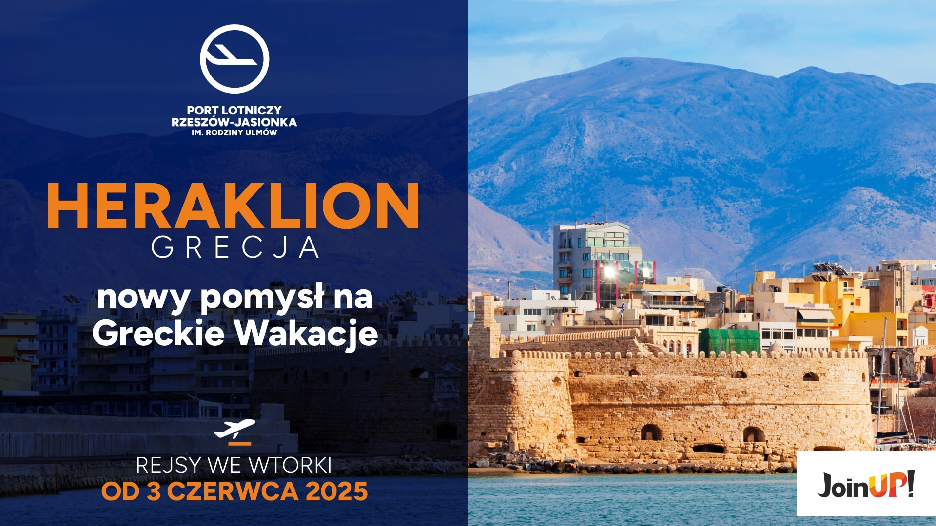 Mieszkańcy Podkarpacia i sąsiednich regionów zyskają w sezonie letnim nowe udogodnienie w postaci regularnych lotów do Grecji. Linia lotnicza SkyUp Airlines ogłosiła uruchomienie nowego połączenia z Portu Lotniczego Rzeszów–Jasionka im. Rodziny Ulmów do Heraklionu – głównego miasta słonecznej Krety.