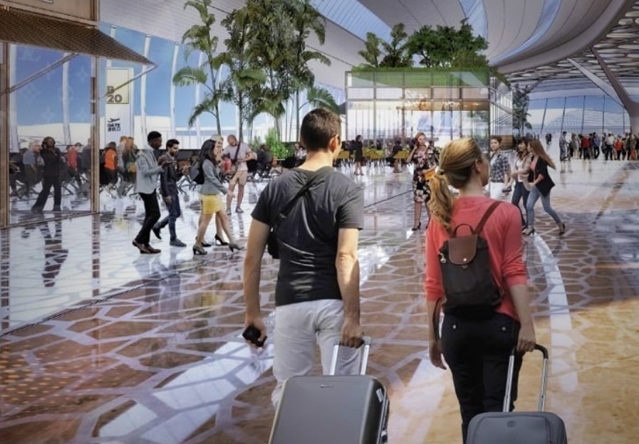 Terminal pasażerski będzie centralnym punktem nowego portu lotniczego CPK – nowoczesnym, funkcjonalnym i przyjaznym środowisku obiektem o powierzchni ok. 450 tys. m.kw. Budynek główny terminala będzie połączony z pirsami pasażerskimi, którymi pasażerowie dotrą do samolotów. W dniu otwarcia wewnątrz znajdzie się blisko 140 stanowisk odprawy biletowo-bagażowej, z rezerwą przestrzenną na montaż kolejnych 30. W pierwszym etapie terminal ma obsługiwać 34 mln pasażerów rocznie i być sukcesywnie rozbudowywany wedle zapotrzebowania i rosnącego ruchu lotniczego – docelowo 44 mln w kolejnym etapie.