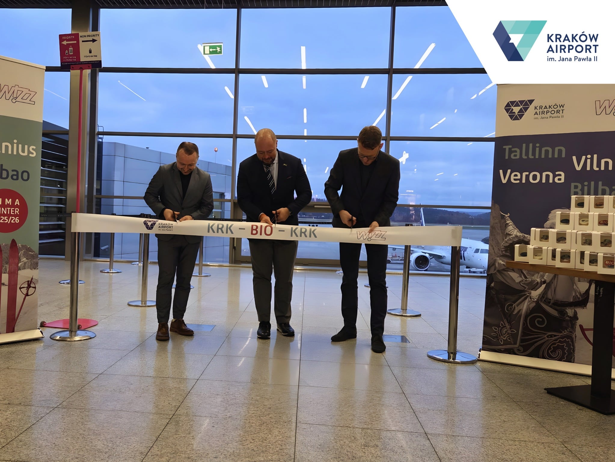 9 grudnia 2025 r. Kraków Airport oficjalnie zainaugurował nowe połączenie lotnicze realizowane przez Wizz Air na trasie do Bilbao, uroczyście otwierając je tradycyjnym przecięciem wstęgi.