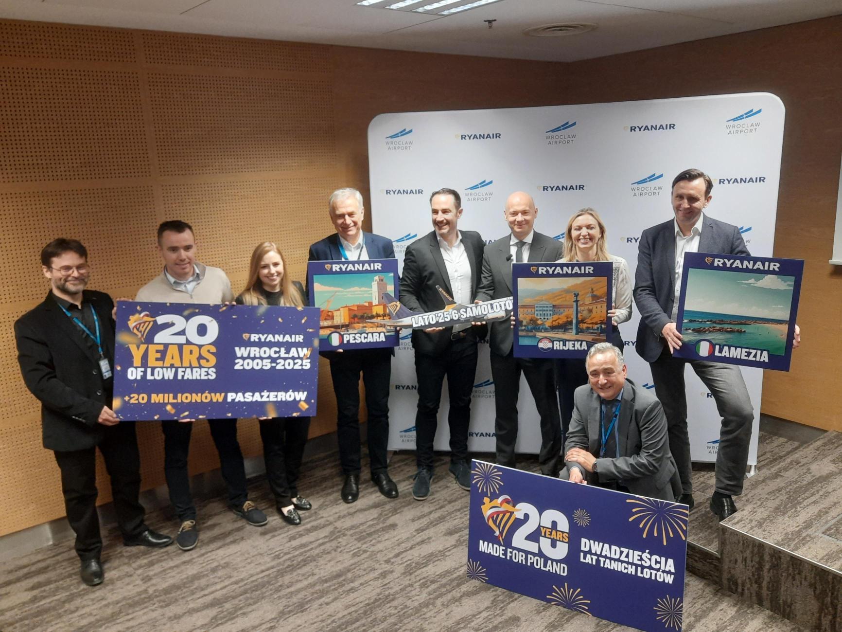 27 marca 2025 roku Ryanair ogłosił największy w historii letni rozkład lotów z Wrocławia, który zbiega się z jubileuszem 20-lecia działalności przewoźnika w Polsce.