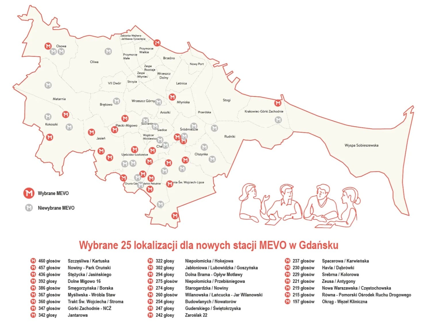 W Gdańsku przybędzie aż 25 nowych stacji Mevo, a co najważniejsze – ich lokalizacje wskazali sami mieszkańcy.