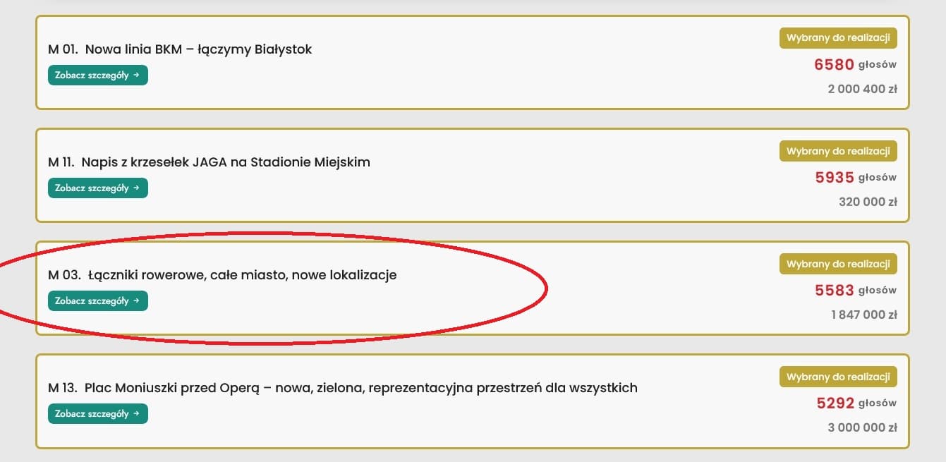 – To właśnie takie projekty, z pozoru niewielkie, najbardziej zmieniają codzienność mieszkańców – mówi przedstawiciel Centrum Aktywności Społecznej w Białymstoku. – Poprawiają bezpieczeństwo, komfort jazdy i zachęcają do przesiadki z samochodu na rower.