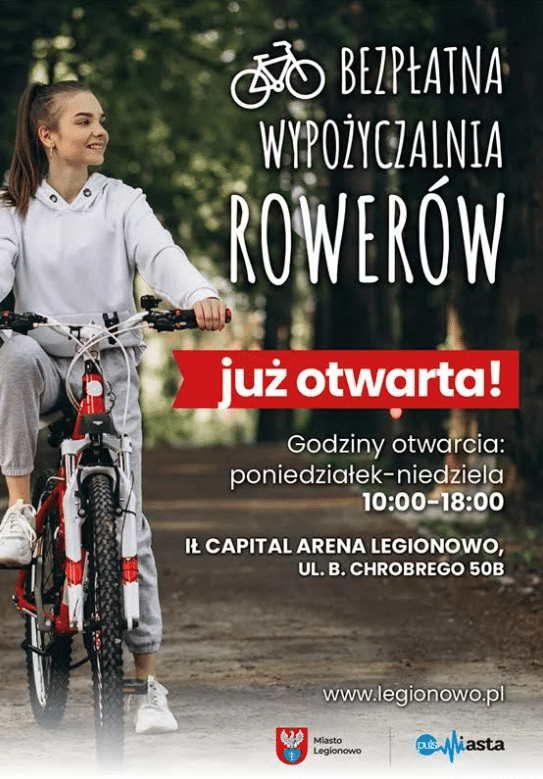 Od 1 kwietnia 2025 roku wznowiła działalność darmowa wypożyczalnia rowerów mieszcząca się w Arenie Legionowo przy ul. Chrobrego 50B. Aby skorzystać z jednośladu, wystarczy przyjść z dokumentem tożsamości ze zdjęciem – wypożyczenie jest bezpłatne.