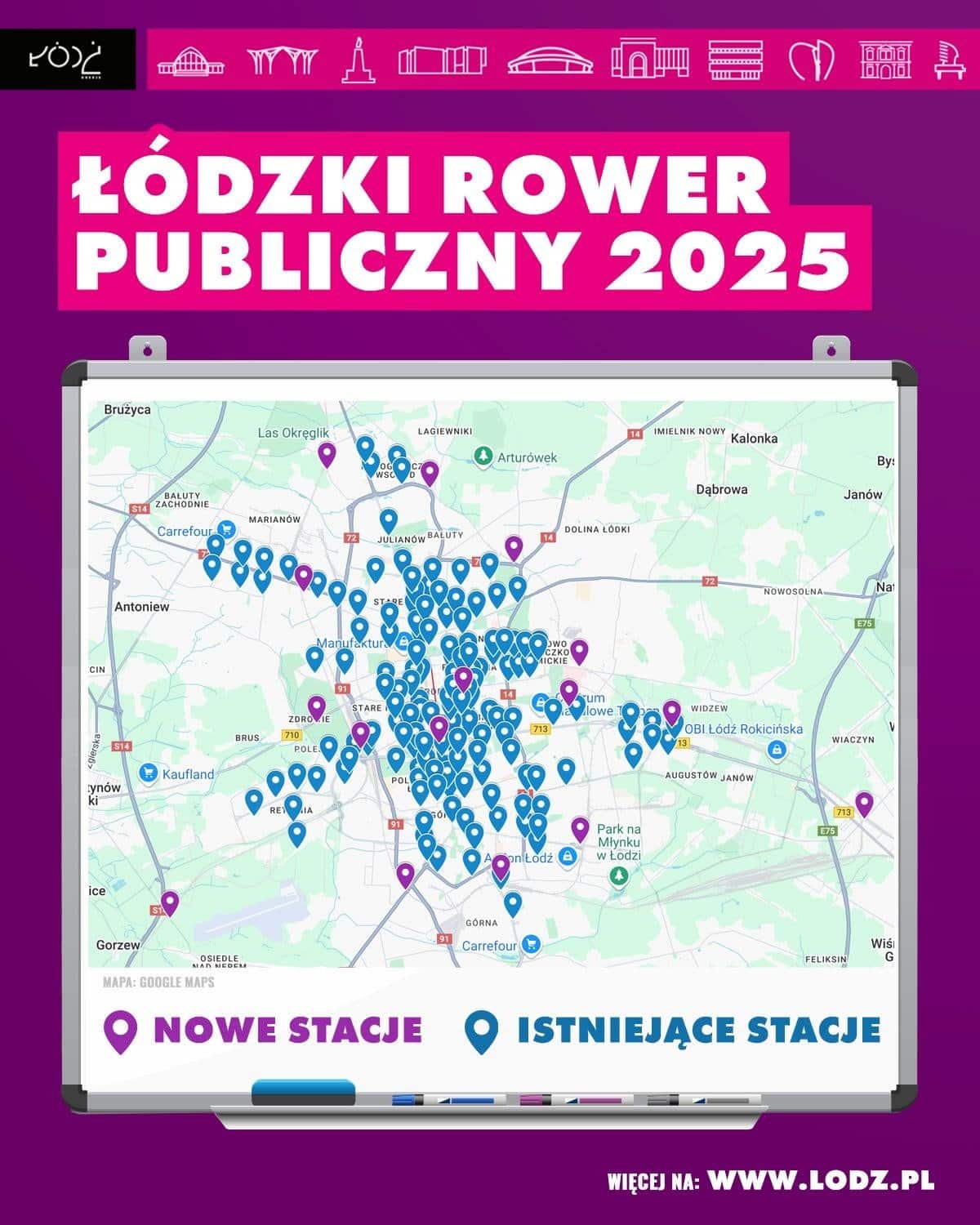 W 2025 roku debiutują również 14 stacji wirtualnych, dzięki którym użytkownicy mogą oddać rower w wyznaczonych punktach bez fizycznej infrastruktury – całkowicie za darmo. Zrezygnowano też z tzw. Strefy II. Nowe lokalizacje stacji pojawiły się m.in. przy Politechnice Łódzkiej (na wniosek uczelni) oraz na Retkini przy ul. Maratońskiej (na prośbę mieszkańców). Te punkty zapewnią lepszy dojazd do kampusu akademickiego, centrum handlowego i stacji kolejowej.