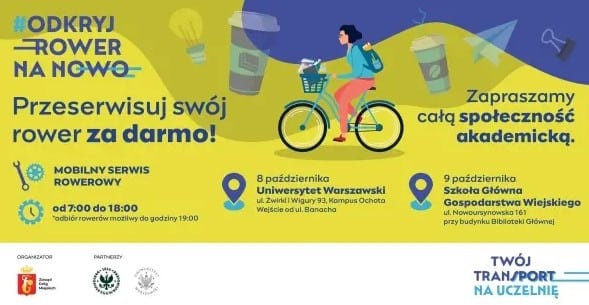 Już w najbliższą środę, 8 października 2025 roku, rusza Mobilny Serwis Rowerowy na Uniwersytecie Warszawskim (Kampus Ochota, ul. Żwirki i Wigury 93).