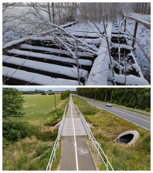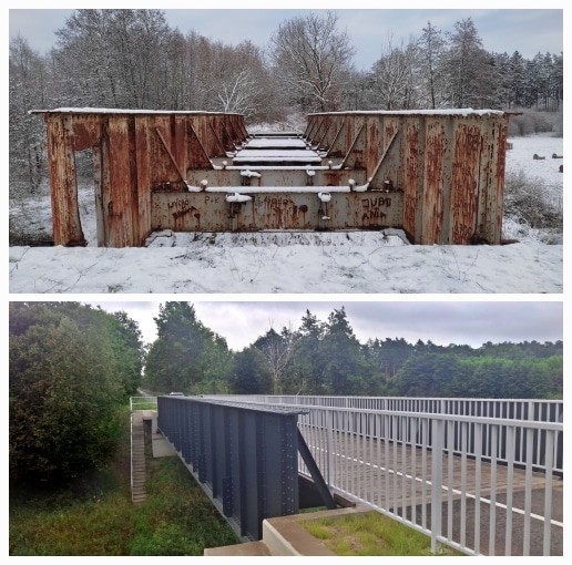W trakcie realizacji znalazł się również niewielki, ale funkcjonalnie ważny element infrastruktury – kładka przy jeziorze Kopań na trasie Velo Baltica. Ten około 30-metrowy obiekt pozwala ominąć odcinek często zasypywany piaskiem, poprawiając komfort i ciągłość przejazdu.