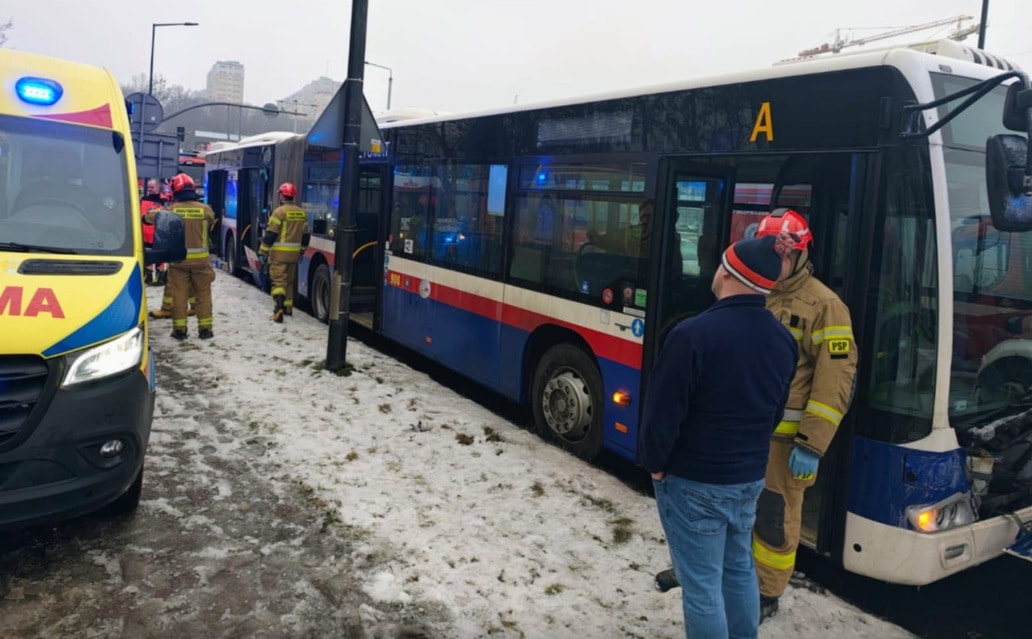 Bydgoszcz: Ciężarówka wjechała w autobus linii 89. Siedem osób poszkodowanych