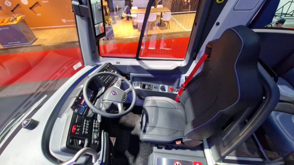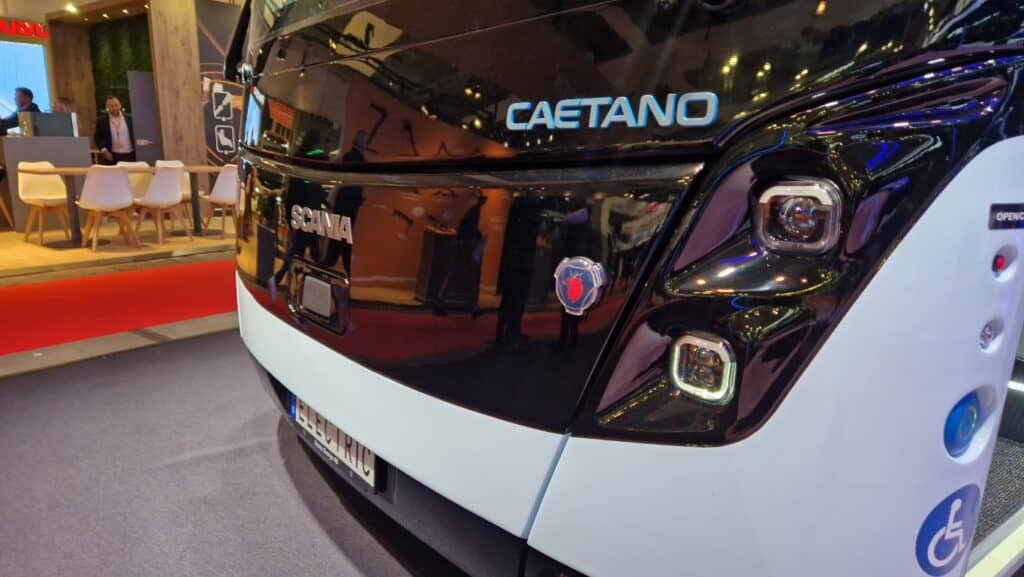 Z kolei na wspólnym stoisku z Scanią, Caetano zaprezentowało także eLevante – pierwszego elektrycznego autokara w historii szwedzko-portugalskiej współpracy. Model tri-axle o długości 14,3 m ma akumulatory 534 kWh i zasięg do 600 km. Napędza go silnik elektryczny o mocy 330 kW, a ładowanie odbywa się z mocą 325 kW. To produkt kierowany na rynek brytyjski, który wejdzie do demonstracji w 2026 roku, w wersji dwu- i trzyosiowej.