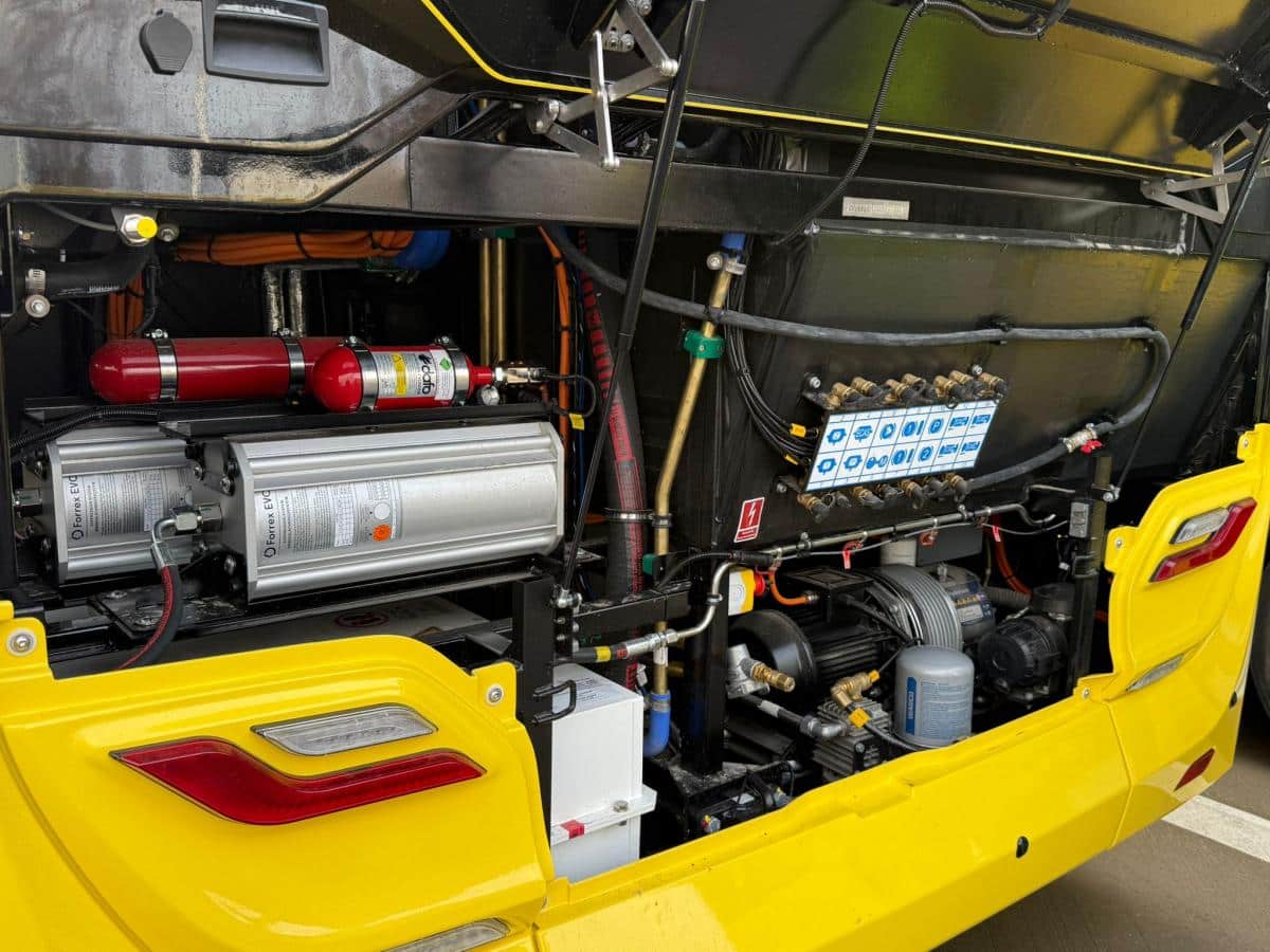 Standard wyposażenia autobusów obejmuje m.in. klimatyzację, Wi-Fi, ładowarki USB, rozbudowany monitoring oraz system informacji pasażerskiej, co zapewnia wysoki komfort podróży. Producent odpowiada za serwis i obsługę gwarancyjną – ogniwa paliwowe objęto gwarancją na 10 lat, a magazyny energii na 15 lat.