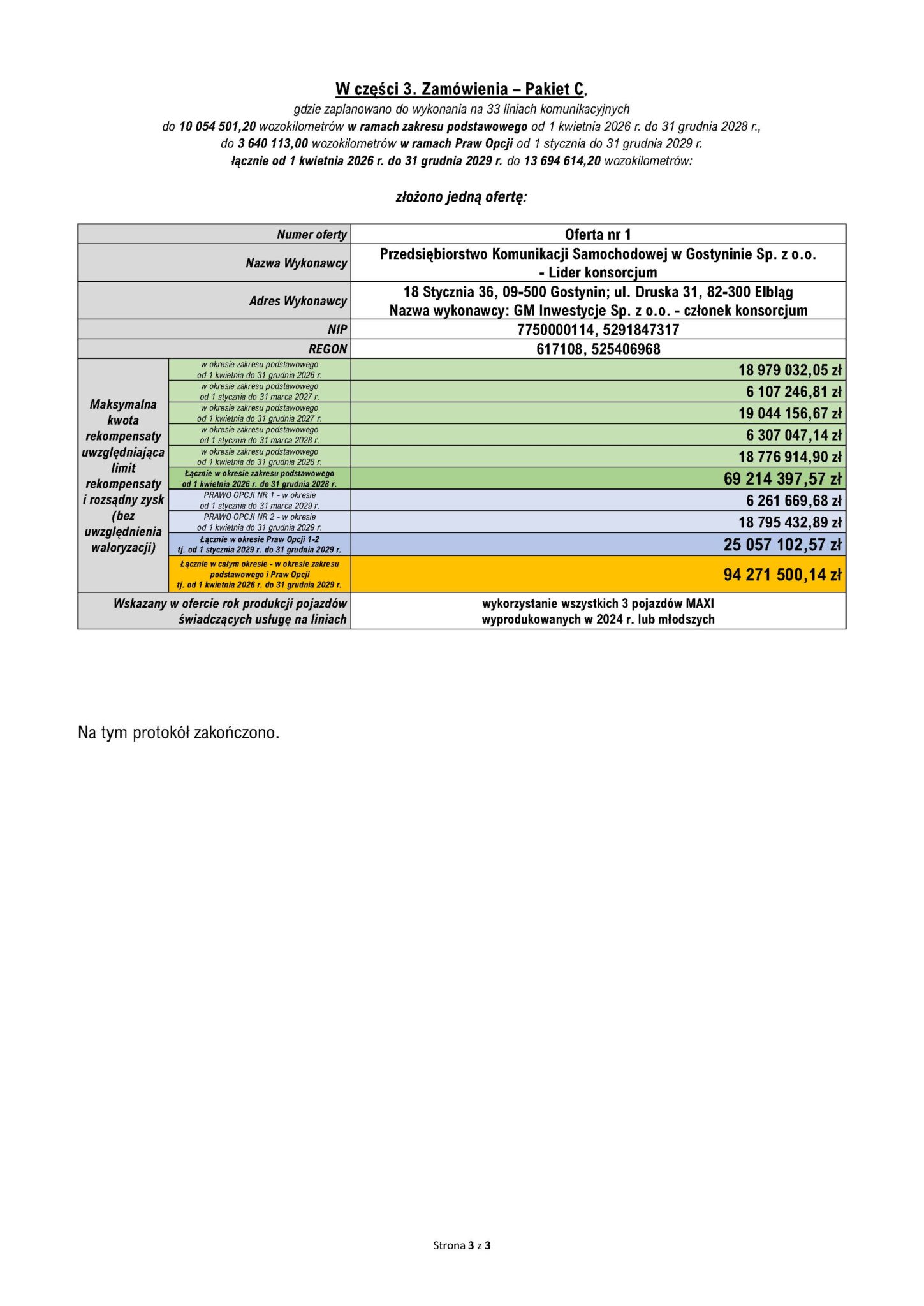 - natomiast Pakiet C – 33 linie i do 13.694.614,20 wozokilometrów.