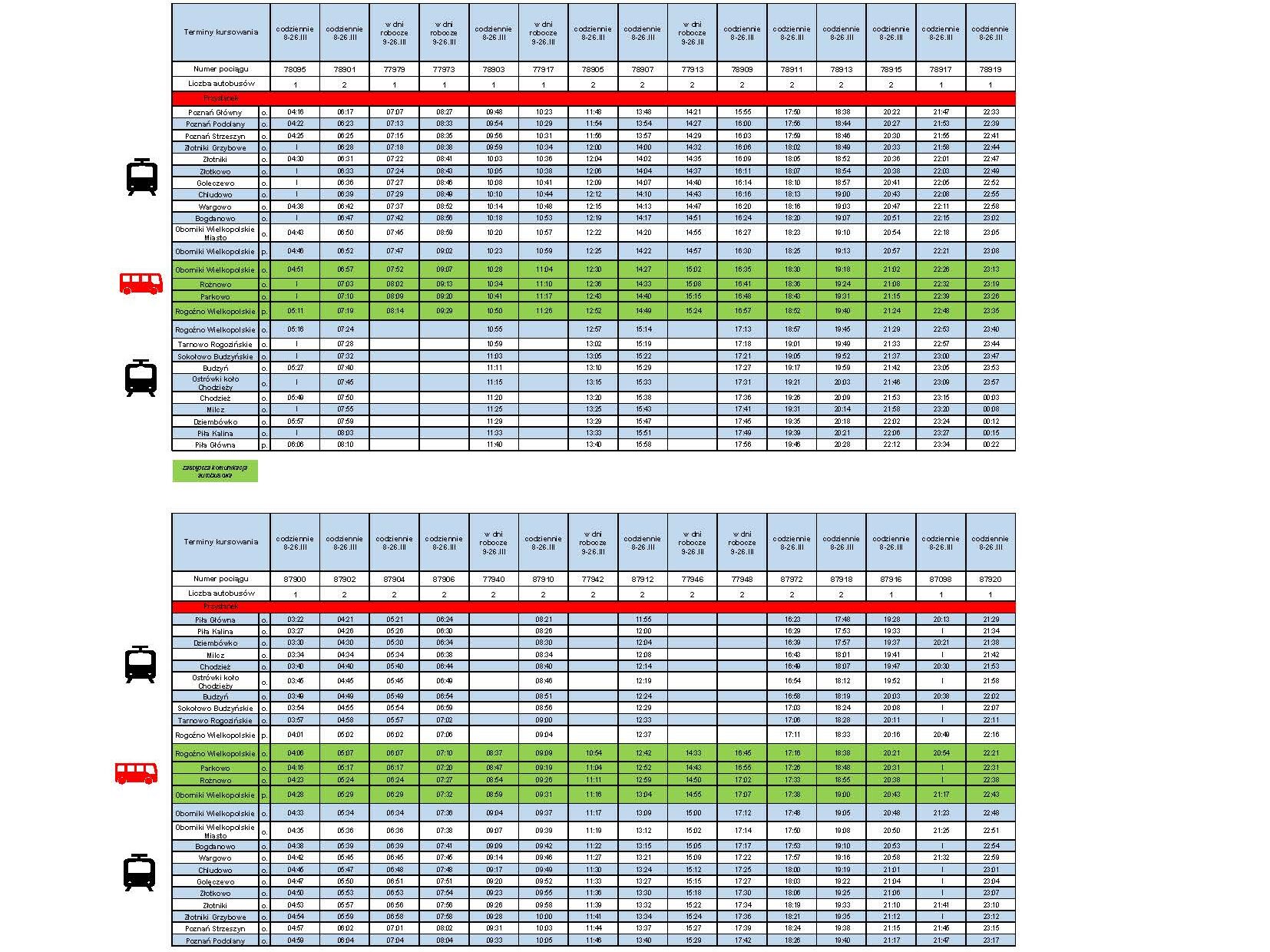 - W jakim terminie będzie realizowana autobusowa komunikacja zastępcza między Obornikami Wielkopolskimi a Rogoźnem Wielkopolskim?