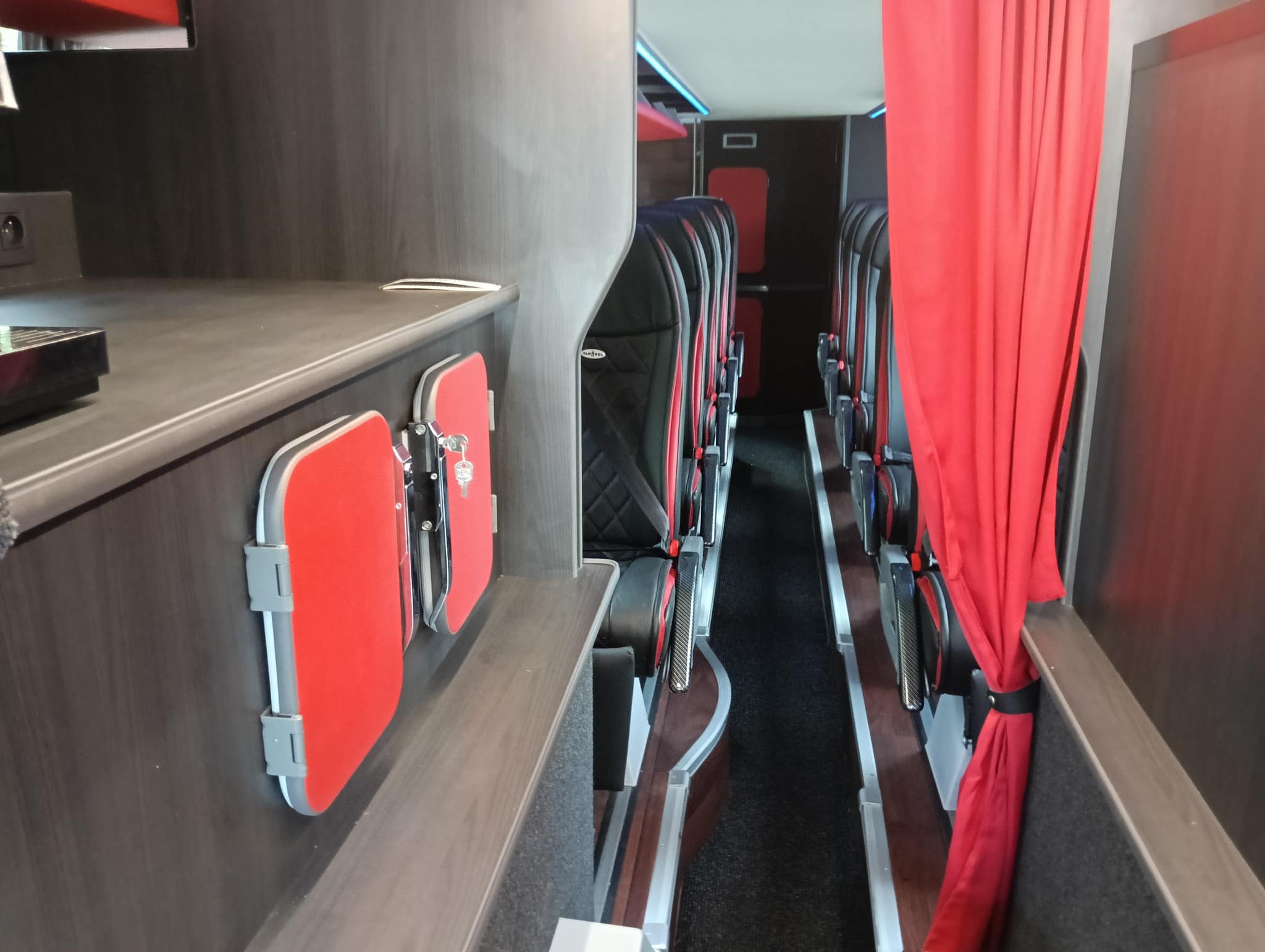 To kolejne takie luksusowe autokary zostały dostarczone na nasz rynek przez firmę Mercus – w formie leasingu długoterminowego. W sierpniu 2025 r. informowaliśmy też dwóch egzemplarzach Van Hool Astromega 2025 – dla firmy Lux-Rejisen Bis. Pojazdy te (o pojemności 78 miejsc) obsługują m.in. trasę Ukraina → Hiszpania. Teraz na naszych drogach można spotkać cztery takie wyjątkowe pojazdy!