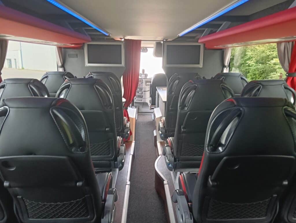 Pojazdy wyposażono w nowoczesny system zarządzania flotą (FMS), kamerę cofania z rejestratorem, system monitorowania ciśnienia w oponach, elektroniczne systemy bezpieczeństwa (ABS, ASR, ESP) oraz asystenta stabilności bocznej, co czyni je w pełni dostosowanymi do wymagań stawianych przez operatorów turystycznych i przewozowych klasy premium.