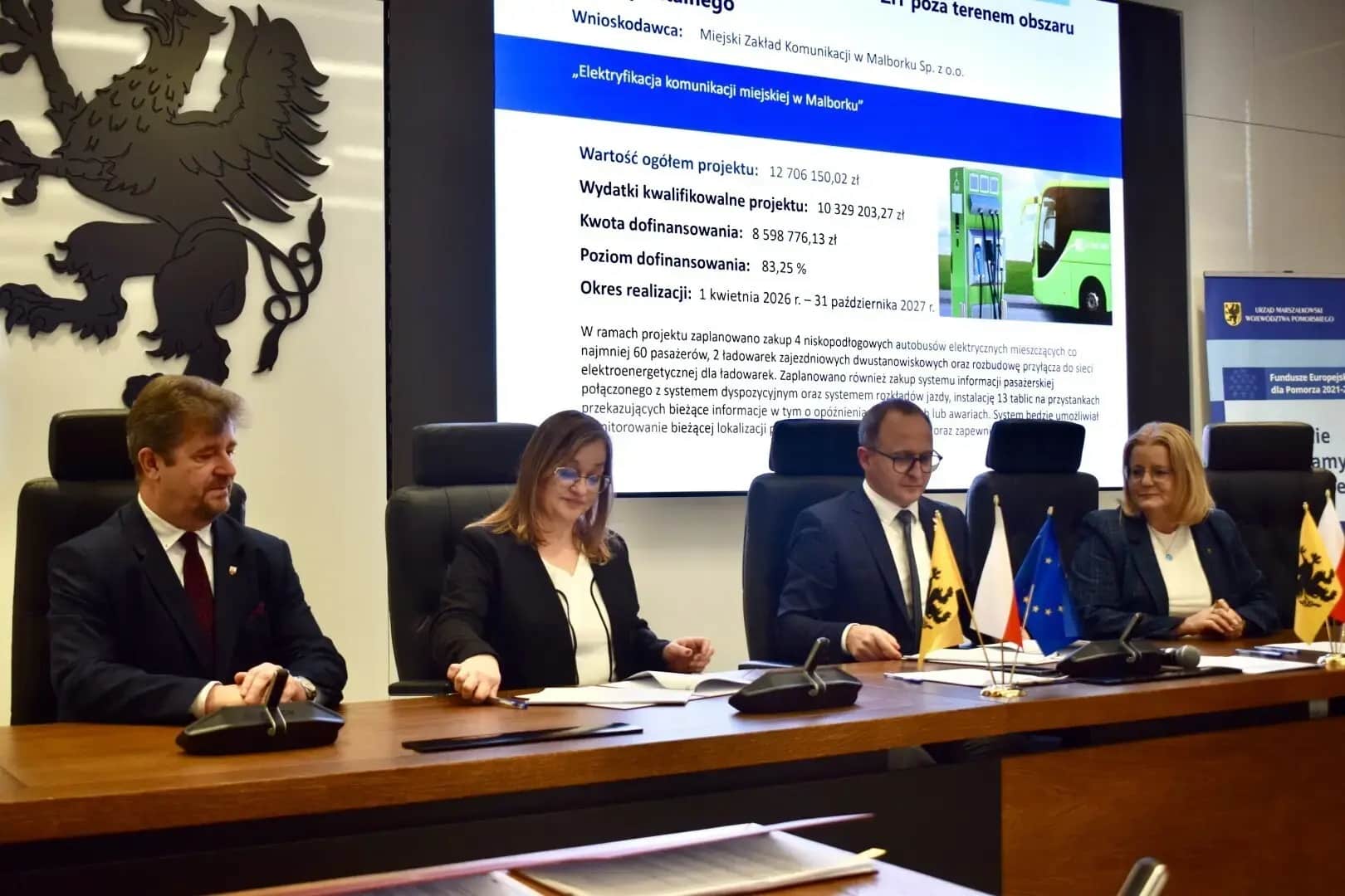 W poniedziałek w Urzędzie Marszałkowskim Województwa Pomorskiego podpisano strategiczne umowy, które realnie zmienią komunikację miejską, jakość podróży i warunki poruszania się po Malborku. Dokumenty podpisali: