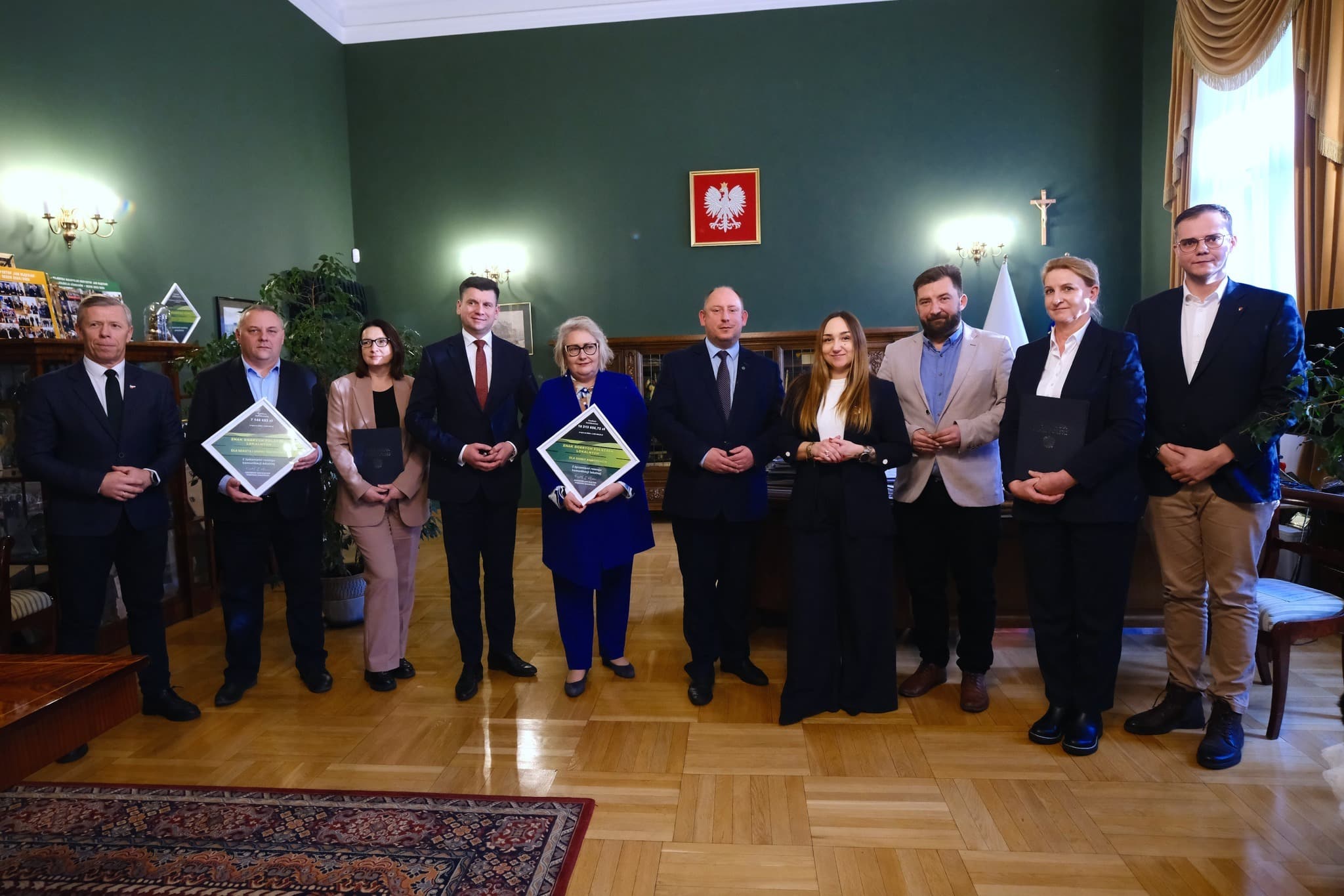 Umowę w ramach Funduszu Rozwoju Przewozów Autobusowych podpisali Marszałek Województwa Małopolskiego Łukasz Smółka oraz Wojewoda Małopolski Krzysztof Jan Klęczar, w obecności Małgorzaty Szostak, Piotra Ćwika i Grzegorza Małodobrego, radnych województwa małopolskiego. Dokument dotyczy finansowania Małopolskich Linii Dowozowych w 2026 roku i ma kluczowe znaczenie dla dalszego rozwoju regionalnego transportu publicznego.