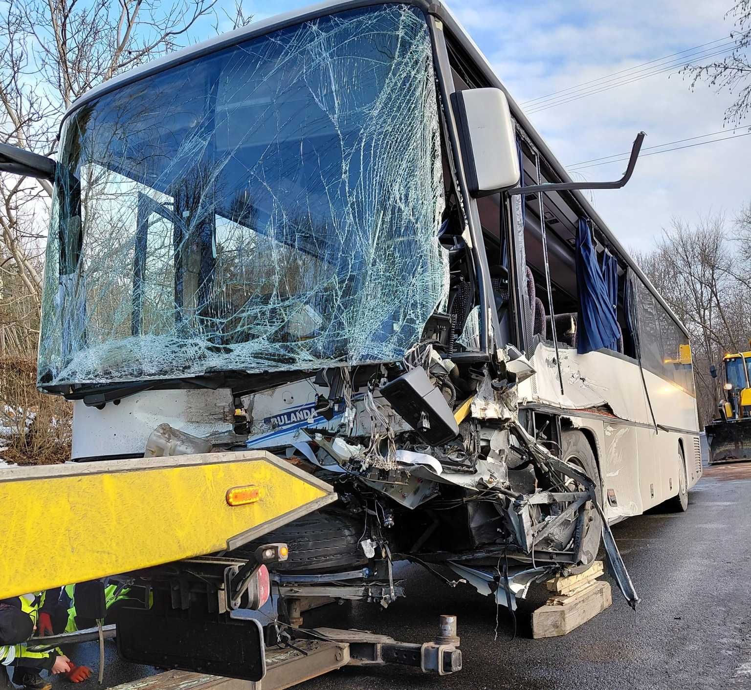 Siła uderzenia była znaczna. W wyniku zderzenia autobus został poważnie uszkodzony i zjechał do przydrożnego rowu. Jak wynika z ustaleń służb, autobusem podróżowało 9 osób, w tym 8 nastolatków w wieku od 10 do 17 lat oraz jedna osoba dorosła. Łącznie w zdarzeniu brało udział około 11 osób.