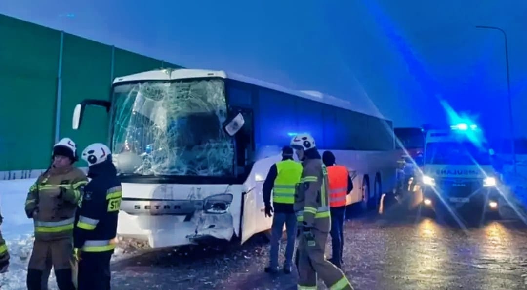 Do zderzenia dwóch autokarów doszło 11 lutego 2026 r. ok. godz. 6 w środę na drodze lokalnej wzdłuż trasy S7, w okolicach miejscowości Kroczewo, w kierunku Warszawy.