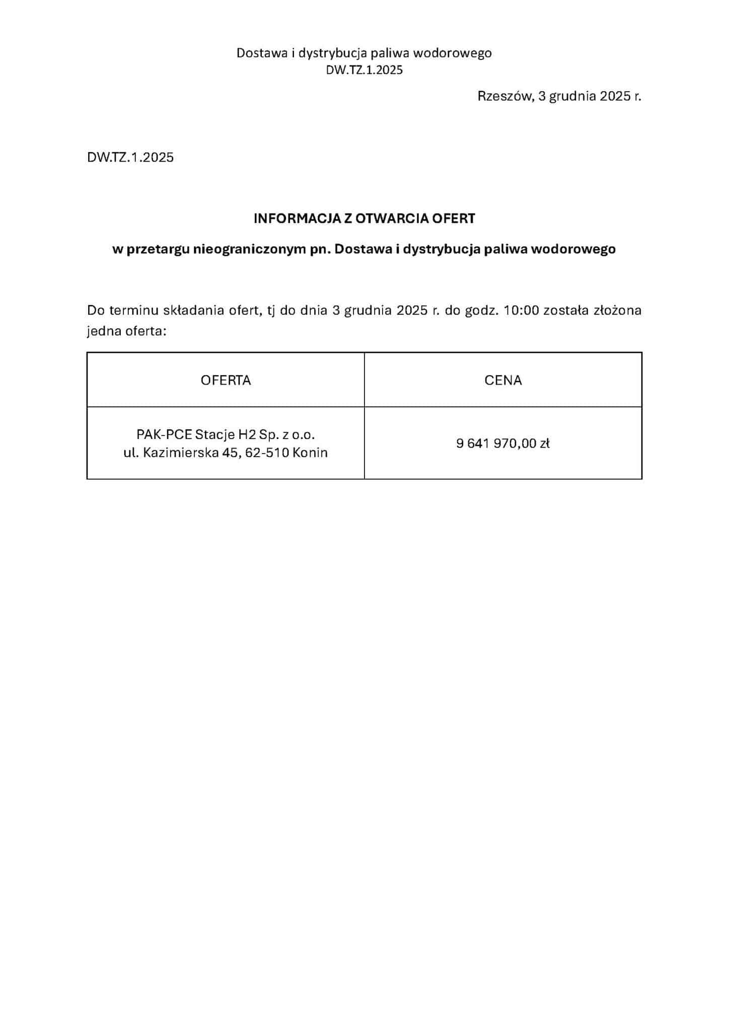 1. Kto złożył ofertę w przetargu na wodór dla Rzeszowa?