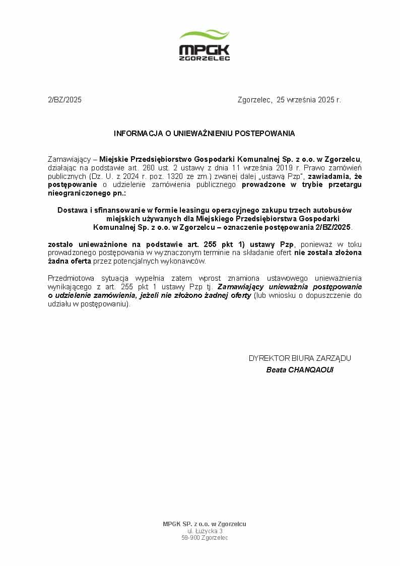 22 września 2025 roku minął termin składania ofert w postępowaniu na leasing operacyjny trzech używanych autobusów miejskich dla Miejskiego Przedsiębiorstwa Gospodarki Komunalnej w Zgorzelcu.