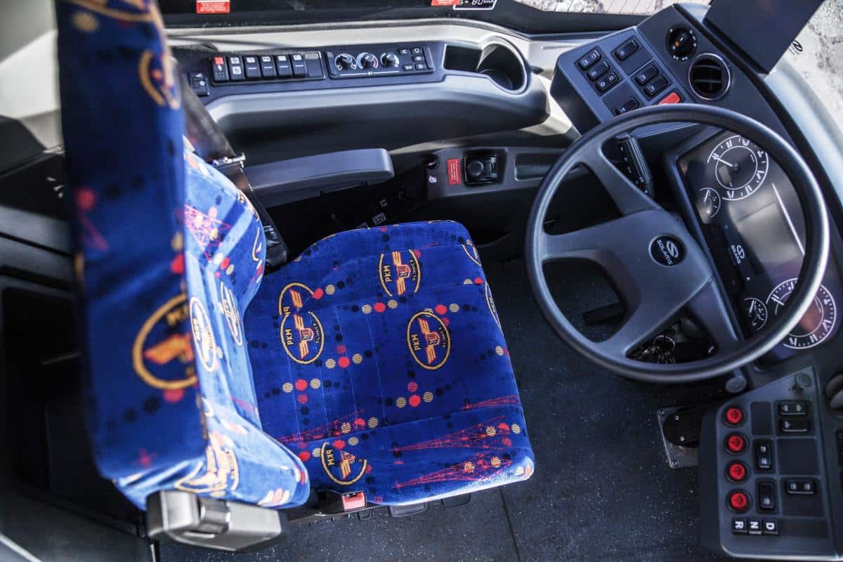 Pasażerowie pojadą na siedzeniach o budowie modułowej, wykonanych z tworzywa sztucznego na szkielecie stalowym lub z tworzywa sztucznego, z możliwością łatwego montażu i demontażu. Siedzenia mają być ukształtowane ergonomicznie, z uchwytami przy siedzeniach od strony przejścia, „wandaloodporne”, „miękkie” – wyposażone w pełną tapicerkę siedziska i oparcia z miękkim wypełnieniem o grubości co najmniej 15 mm dla siedziska i 10 mm dla oparcia, pokryte wykładziną tapicerowaną odporną na ścieranie i zabrudzenia, z możliwością łatwego zmywania. Z kolei przedział kabiny kierowcy będzie całkowicie oddzielony od przedziału dla pasażerów, ze ścianą za miejscem kierowcy i zawiasowo uchylnym skrzydłem drzwi z prawej strony fotela. Pierwsze skrzydło przednich drzwi ma stanowić drzwi wejściowe do kabiny kierowcy. W kabinie zostanie zainstalowany system kontroli trzeźwości kierowcy.