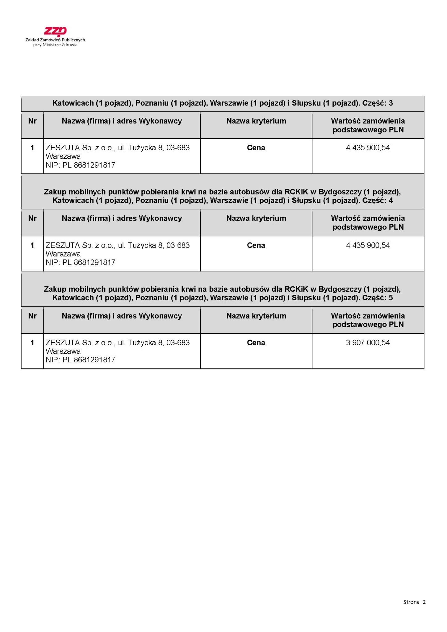 21 listopada 2025 r. otwarto oferty w powtórzonym postępowaniu na dostawę pięciu autobusów do poboru krwi dla Regionalnych Centrów Krwiodawstwa i Krwiolecznictwa z Bydgoszczy, Katowic, Poznania, Warszawy i Słupska.