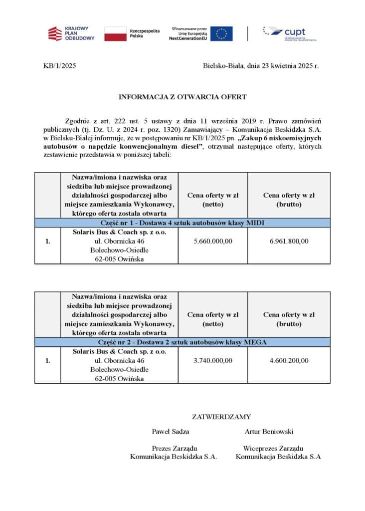 - Czy Komunikacja Beskidzka planuje kolejne zakupy autobusów w 2025 roku?