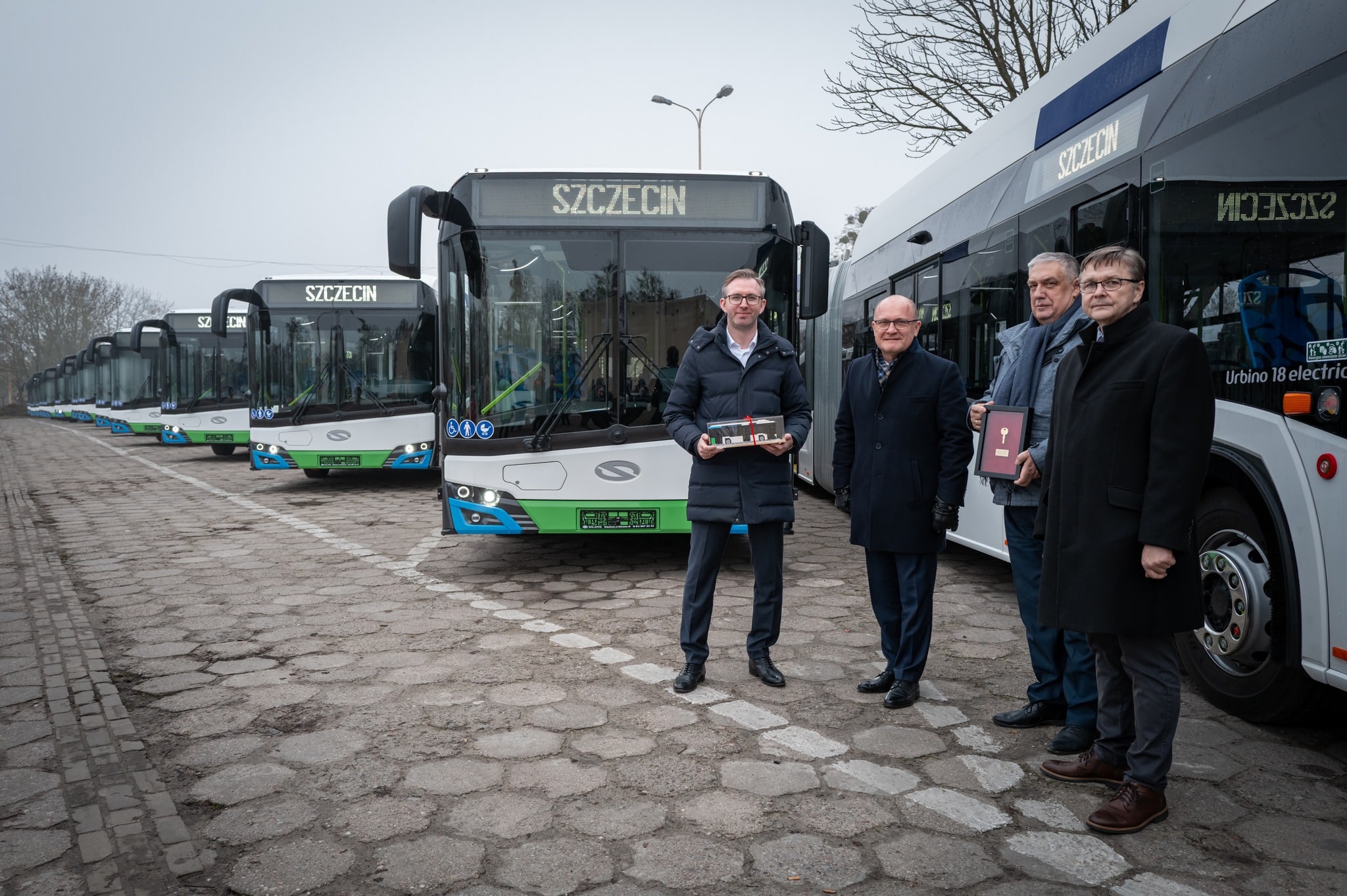 Nowe autobusy wkrótce wyjadą na linie komunikacji miejskiej, wzmacniając zeroemisyjny transport publiczny w mieście. Na prezentacji w zajezdni obecny był prezydent Szczecina Piotr Krzystek i jego zastępca Łukasz Kadłubowski. Firmę Solaris Bus & Coach reprezentował dyrektor do spraw sprzedaży Waldemar Wlazło. O tym zamówieniu pisaliśmy już wcześniej w TransInfo.