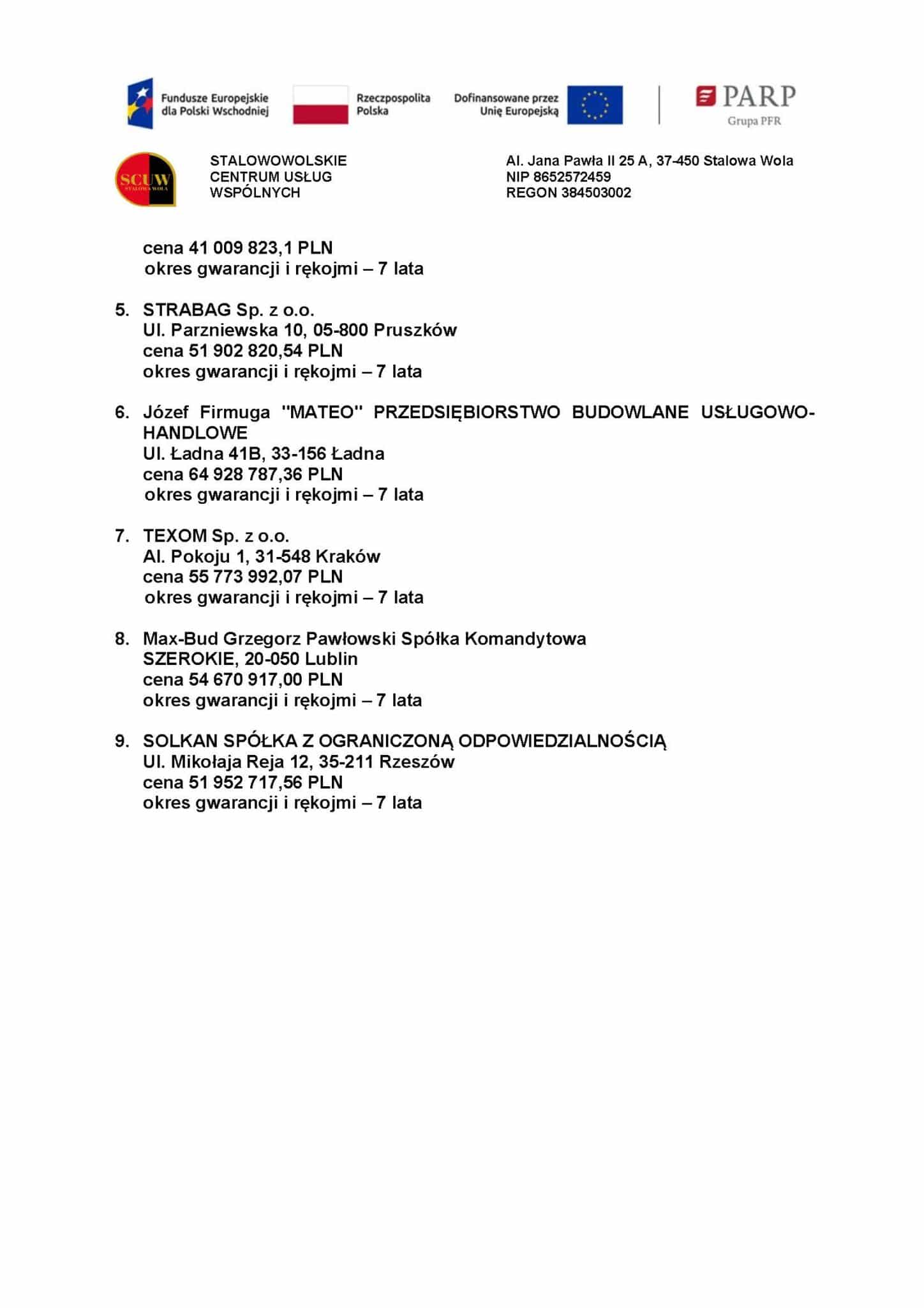 - Tronus Polska Sp. z o.o. (97.839.297,12 PLN, gwarancja 3 lata),
