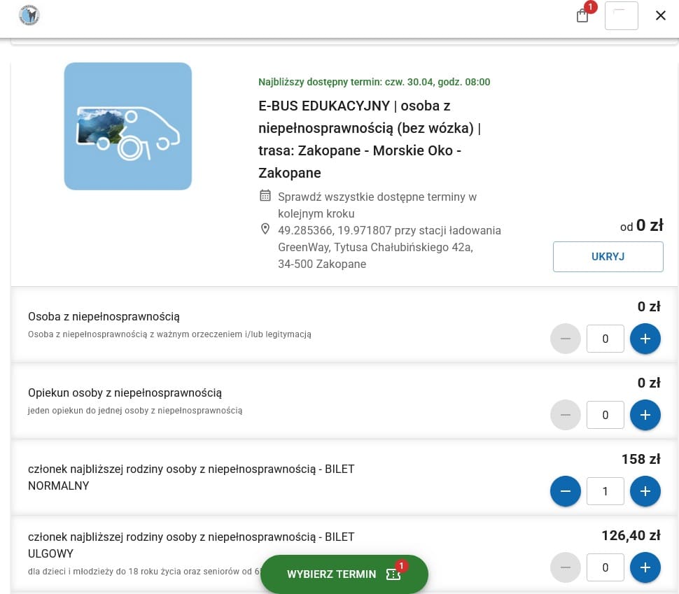 Na trasie Zakopane – Morskie Oko – Zakopane przejazdy dla osób z niepełnosprawnościami i ich opiekunów będą bezpłatne – wymagane jest okazanie stosownego orzeczenia lub legitymacji wraz z dokumentem tożsamości. Kurs obejmuje przejazd w obie strony. Ceny biletów na pozostałych trasach wynoszą: z Zakopanego do Włosienicy od 54,60 do 89 zł, a z Palenicy Białczańskiej do Włosienicy od 40,60 do 69 zł. Ceny zawierają już bilet wstępu do TPN. Zniżki przysługują m.in. posiadaczom Karty Dużej Rodziny, dzieciom i młodzieży do 18. roku życia oraz seniorom powyżej 65 lat. Dzieci do 4. roku życia podróżują bezpłatnie.