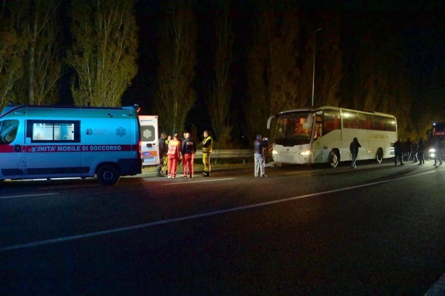 Do tragedii doszło na autostradzie Rieti–Terni, w pobliżu miejscowości Contigliano. Jak wynika z ustaleń włoskich mediów, grupa napastników — prawdopodobnie pseudokibiców Sebastiani — śledziła pojazd eskortowany wcześniej przez policję, a następnie rzucała w niego kamieniami i cegłami z ukrycia za barierką drogową.