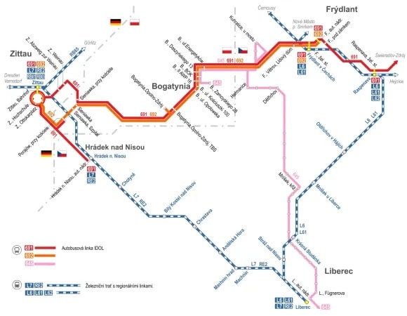 Od stycznia 2026 roku mieszkańcy południowo-zachodniej części Dolnego Śląska oraz pogranicza czesko-niemieckiego zyskali nowe, regularne połączenie w ramach publicznego transportu zbiorowego. Uruchomiona została transgraniczna linia autobusowa nr 692, obsługująca obszar Trójstyku: Libereckiego Kraju, Polski i Niemiec, będąca elementem czeskiego zintegrowanego systemu transportowego IDOL.