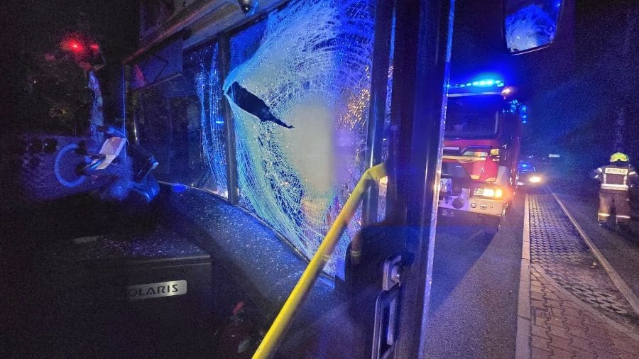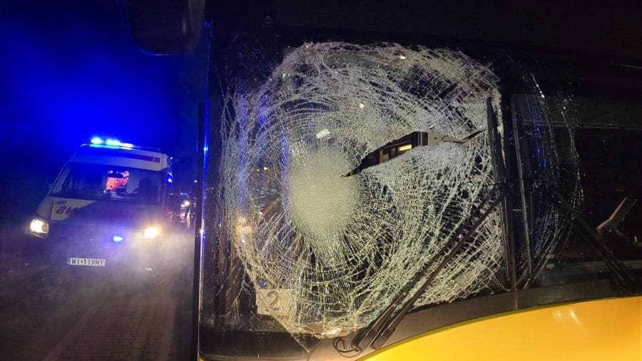 Wiązowna: Autobus miejski zderzył się z sarną. Szyba zniszczona – kierowca ranny