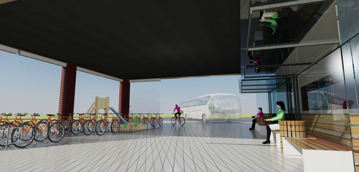 Projekt uwzględnia rozwiązania multimodalne. W otoczeniu dworca przewidziano:
