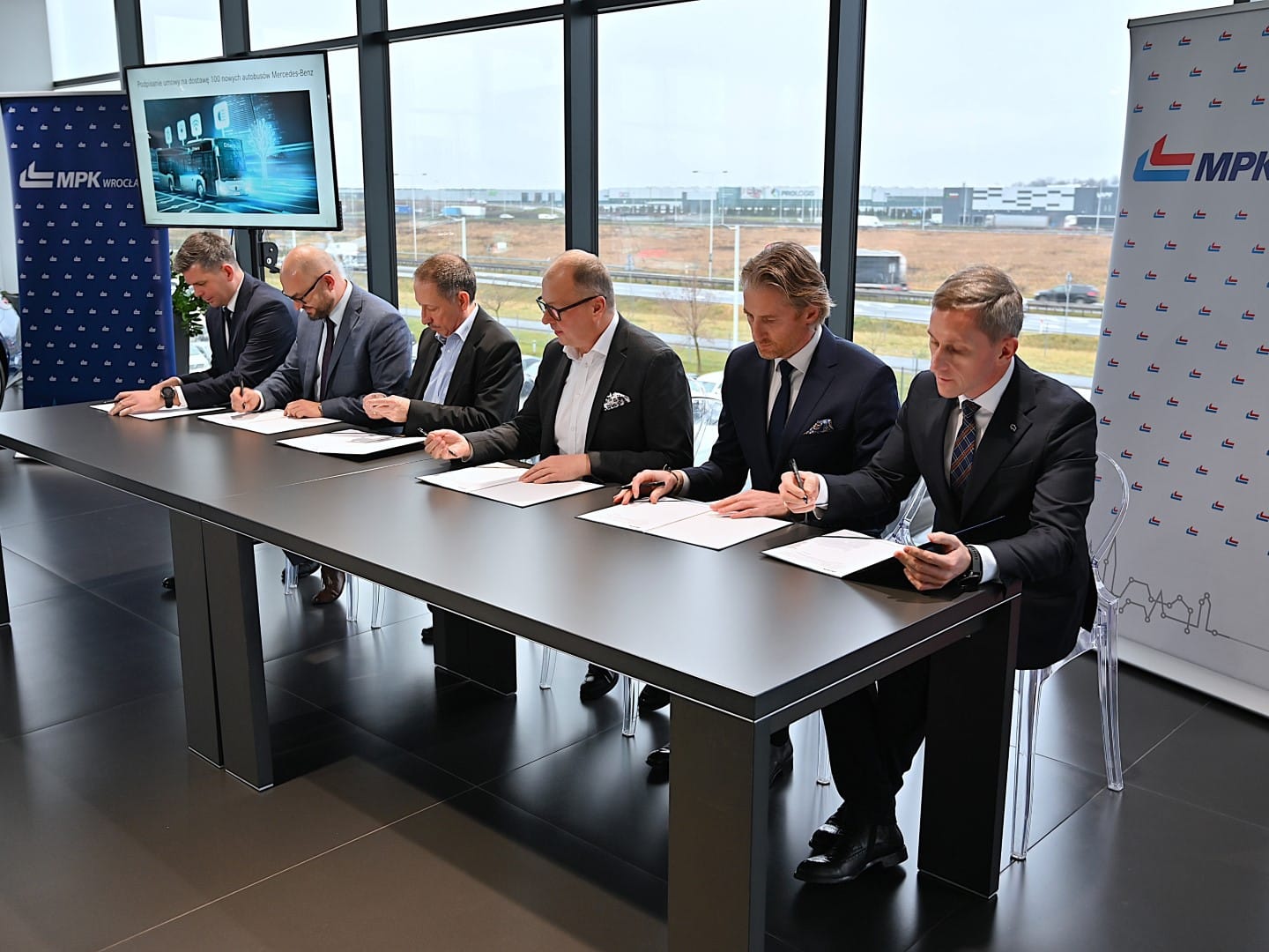 Umowę na realizację pierwszego zadania, dotyczącego dostawy 100 autobusów, podpisano z konsorcjum Daimler Buses Polska (lider konsorcjum) i Pekao Leasing. O wadze kontraktu dla przedstawiciela autobusów marki Mercedes-Benz w Polsce świadczy fakt obecności Romana Biondi, szefa sprzedaży Daimler Buses w Europie oraz Jacka Sutryka, prezydenta Wrocławia. .