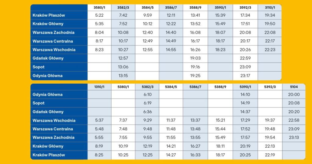 - Kraków – Warszawa – Gdańsk – Gdynia
