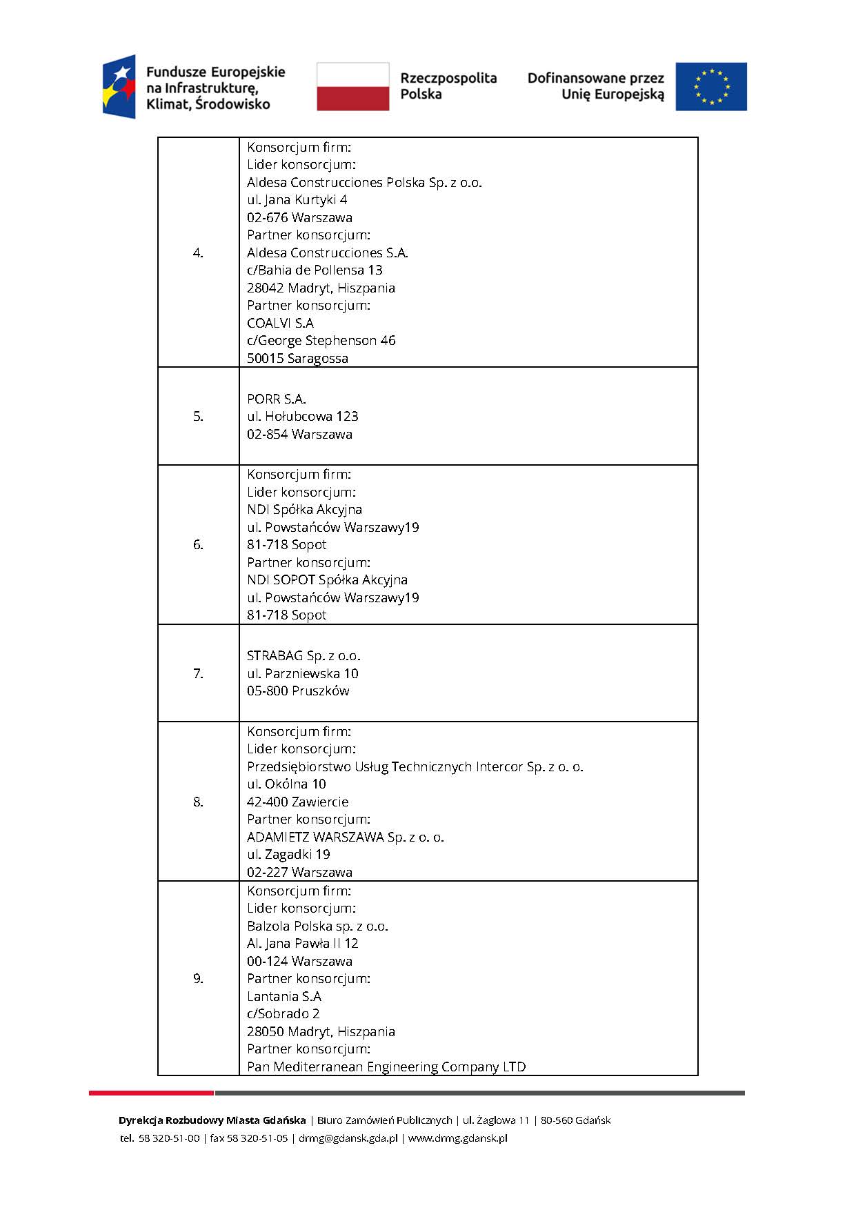 - Konsorcjum firm, lider: Polimex Infrastruktura