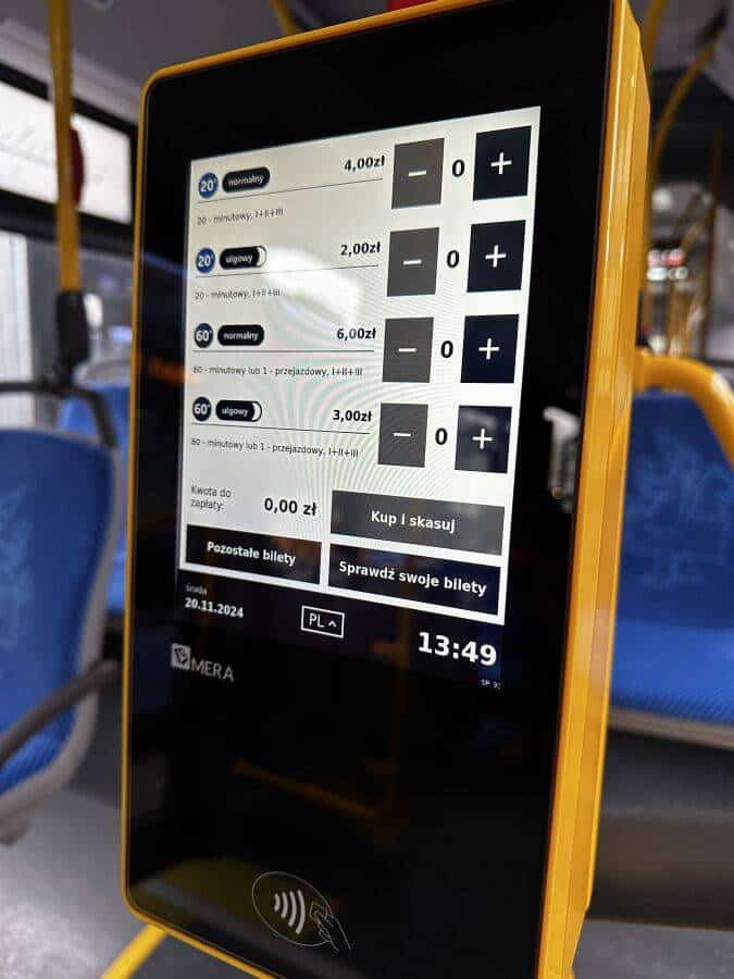 W 2025 roku zakończono szeroko zakrojoną operację wymiany urządzeń. W pojazdach MPK zamontowano 692 nowe, żółte automaty, które obsługują wyłącznie płatności bezgotówkowe i nie drukują biletów. Jednocześnie w taborze pozostaje około 700 starszych automatów, umożliwiających płatność gotówką. Nowe urządzenia będą pojawiać się sukcesywnie wraz z dostawami nowego taboru.