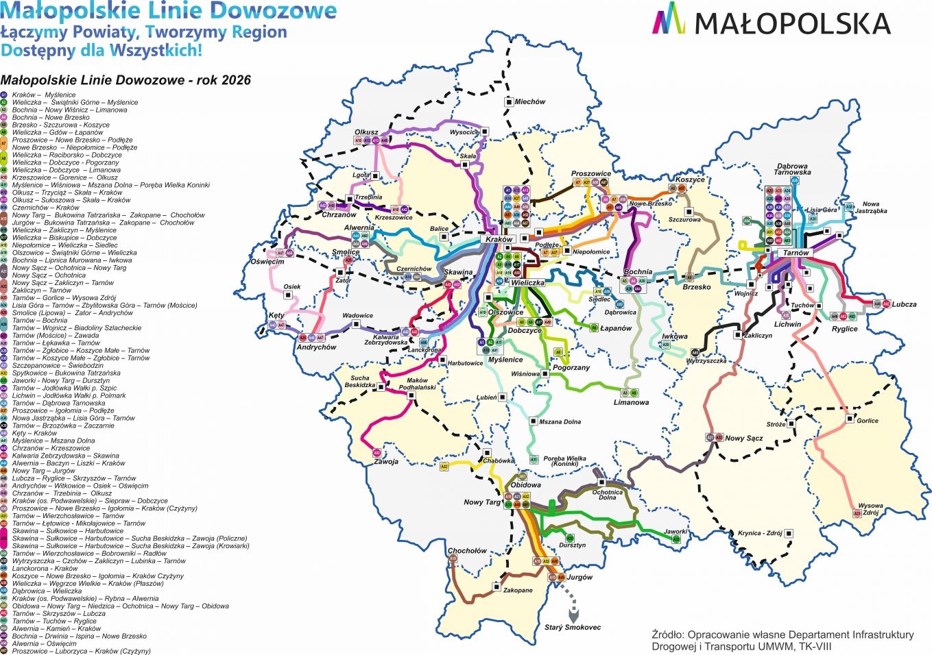 Nowe linie obejmą zarówno połączenia aglomeracyjne, jak i relacje łączące mniejsze miejscowości z większymi ośrodkami. Wśród nich są m.in. trasy Kraków–Myślenice, Olkusz–Kraków, Tarnów–Dąbrowa Tarnowska oraz nowe linie na Podhalu i Sądecczyźnie. Dla wielu mieszkańców to pierwszy stabilny dostęp do regularnego transportu publicznego, który umożliwia dojazd do pracy, szkoły czy urzędów.