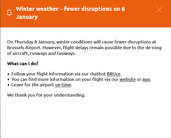 Lotnisko w Zaventem spodziewa się przez cały dzień opóźnień w przylotach i odlotach z powodu odladzania samolotów oraz odladzania i odśnieżania pasów startowych i dróg kołowania.