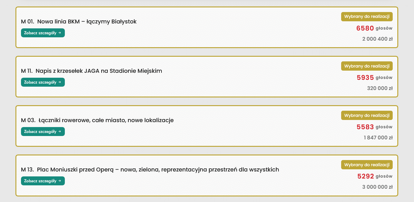 - Jaki projekt zdobył najwięcej głosów w tegorocznym Budżecie Obywatelskim w Białymstoku i ile wynosi jego wartość?
