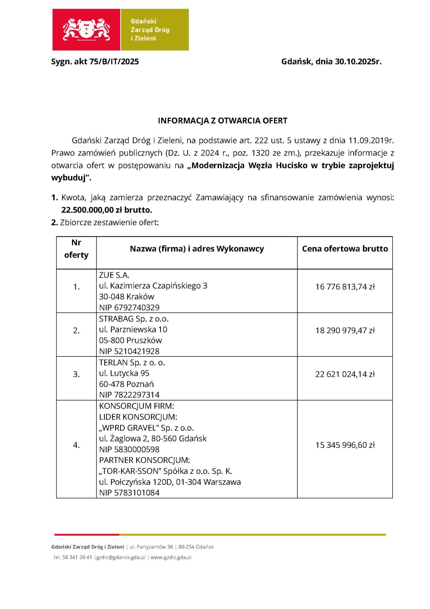 - Jaka jest wartość podpisanej umowy na remont Węzła Hucisko w Gdańsku?