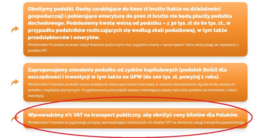 Oznacza to, że ewentualne wprowadzenie zerowego VAT na transport publiczny zależy przede wszystkim od sytuacji finansów publicznych, a nie tylko decyzji politycznej.