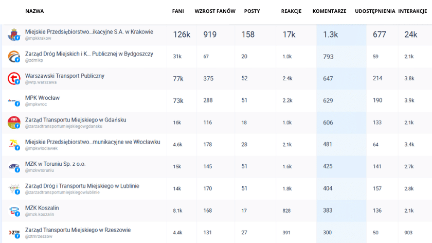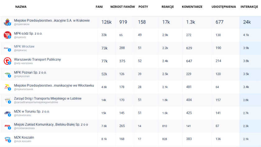 Informacje o zmianach tras, utrudnieniach, nowych autobusach, tramwajach, trolejbusach, rozkładach jazdy czy inwestycjach taborowych trafiają na Facebooka szybciej niż do wielu klasycznych kanałów komunikacji. Dlatego liczba interakcji pokazuje nie tylko popularność profilu, ale też poziom zaangażowania lokalnej społeczności.